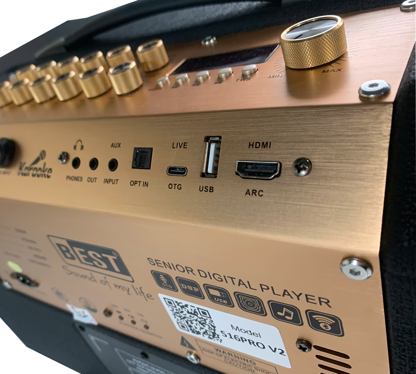 Không chỉ dừng lại ở một dòng loa xách tay thông thường, BEST S16-V2, cho thấy mình là một dàn âm thanh chuyên nghiệp, với đa dạng các nút điều chỉnh âm thanh và effect của loa như một main DJ thực thụ