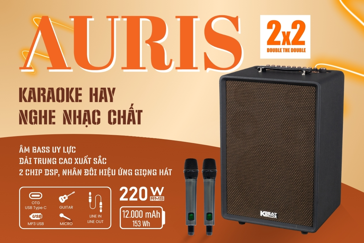 SONCAMEDIA AURIS nâng cấp đột phá, nâng tầm trải nghiệm karaoke với công nghệ “DOUBLE THE DOUBLE” giúp tách riêng giọng hát và nhạc nền để tối ưu từng phần, tạo hiệu ứng dày, vang và chuyên nghiệp như phòng thu. Soncamedia AURIS là sự kết hợp hoàn hảo, mang đến trải nghiệm âm thanh tuyệt đỉnh cho cả karaoke và nghe nhạc. Với âm bass uy lực mạnh mẽ cùng dải âm trung cao xuất sắc, trong trẻo mọi bài hát đều trở nên sống động và lôi cuốn hơn bao giờ hết. SONCAMEDIA AURIS được trang bị hệ thống loa 3 đường tiếng cho âm thanh trung thực, chi tiết đến từng dải âm phù hợp cho nhiều chất liệu âm nhạc khác nhau. Trong đó, hệ thống loa bao gồm: loa BASS 25CM (10") + 2-loa TRUNG 10CM (4") + 2-loa TREBLE (TWEETER), và không thể thiếu của các dòng loa cao cấp đến từ Soncamedia chính là sử dụng 2 loa Tweeter Neodymium (dùng trong các dòng loa nghe nhạc Hi-end cao cấp) giúp âm treble nghe hay hơn.