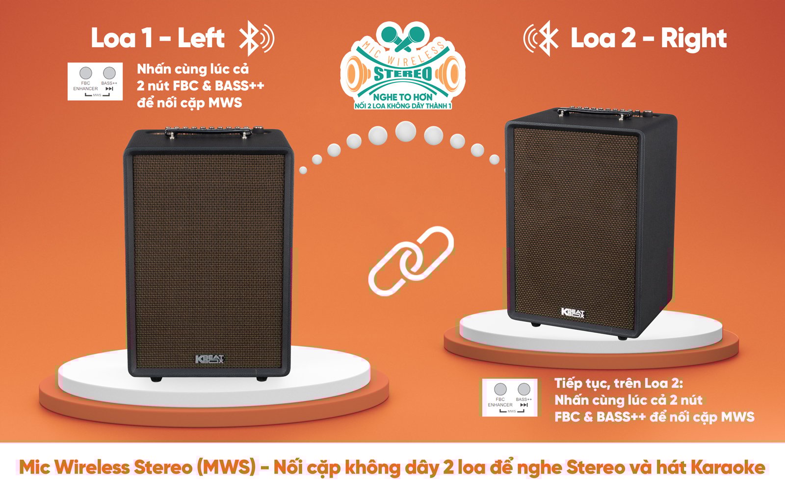 Mic Wireless Stereo (MWS) là tính năng nối cặp không dây 2 loa để nghe Stereo và hát Karaoke