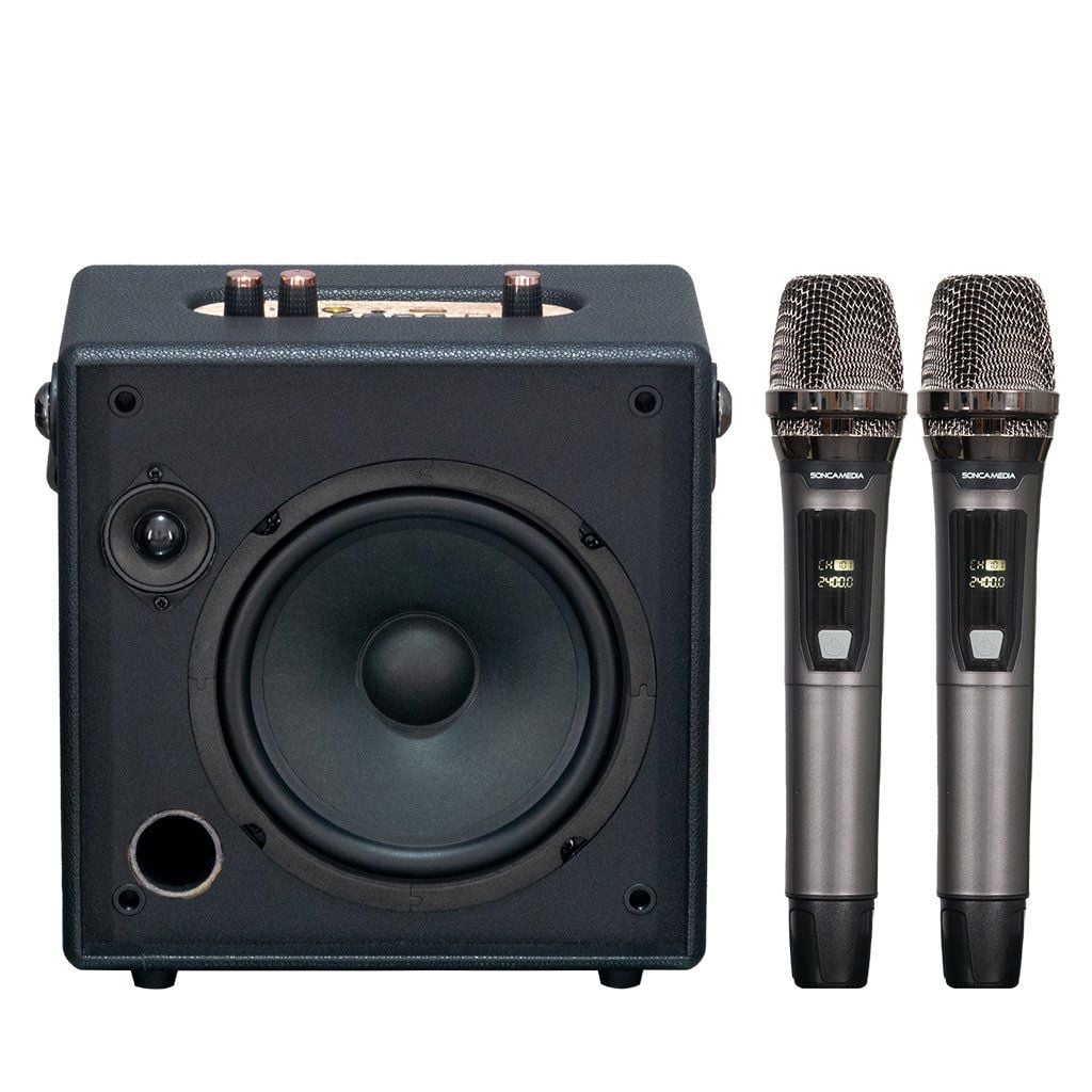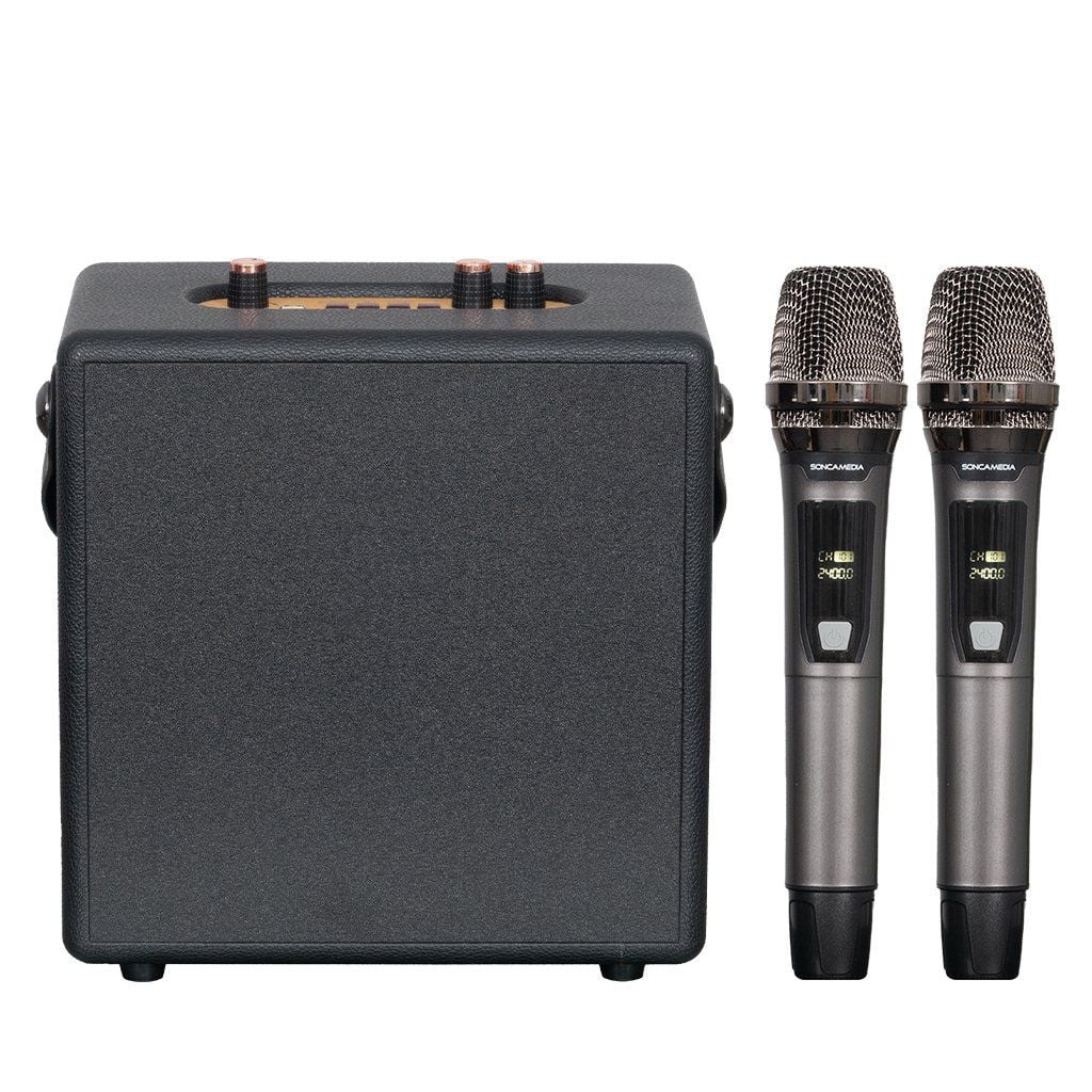 DÀN KARAOKE DI ĐỘNG BÉ NHỎ XINH XINH SONCAMEDIA CarryOn mang đến trải nghiệm tiện lợi tối đa cho người dùng hiện đại. Sở hữu thiết kế siêu nhỏ gọn, tinh giản và dễ dàng mang theo, CarryOn được tạo ra để đồng hành cùng bạn trên mọi hành trình. SONCAMEDIA CarryOn được trang bị hệ thống 2 loa: Loa BASS 16cm (6.5") và loa TREBLE cho âm thanh trung thực, chi tiết đến từng dải âm phù hợp cho nhiều chất liệu âm nhạc khác nhau. Loa đi kèm 2 micro nhôm UHF 2.4G cao cấp, nhẹ hơi - dễ hát. Đồng thời, CarryOn tích hợp Bluetooth 5.0 giúp kết nối các thiết bị di động nhanh hơn, tiết kiệm năng lượng, tăng phạm vi kết nối và truyền dữ liệu nhanh hơn.