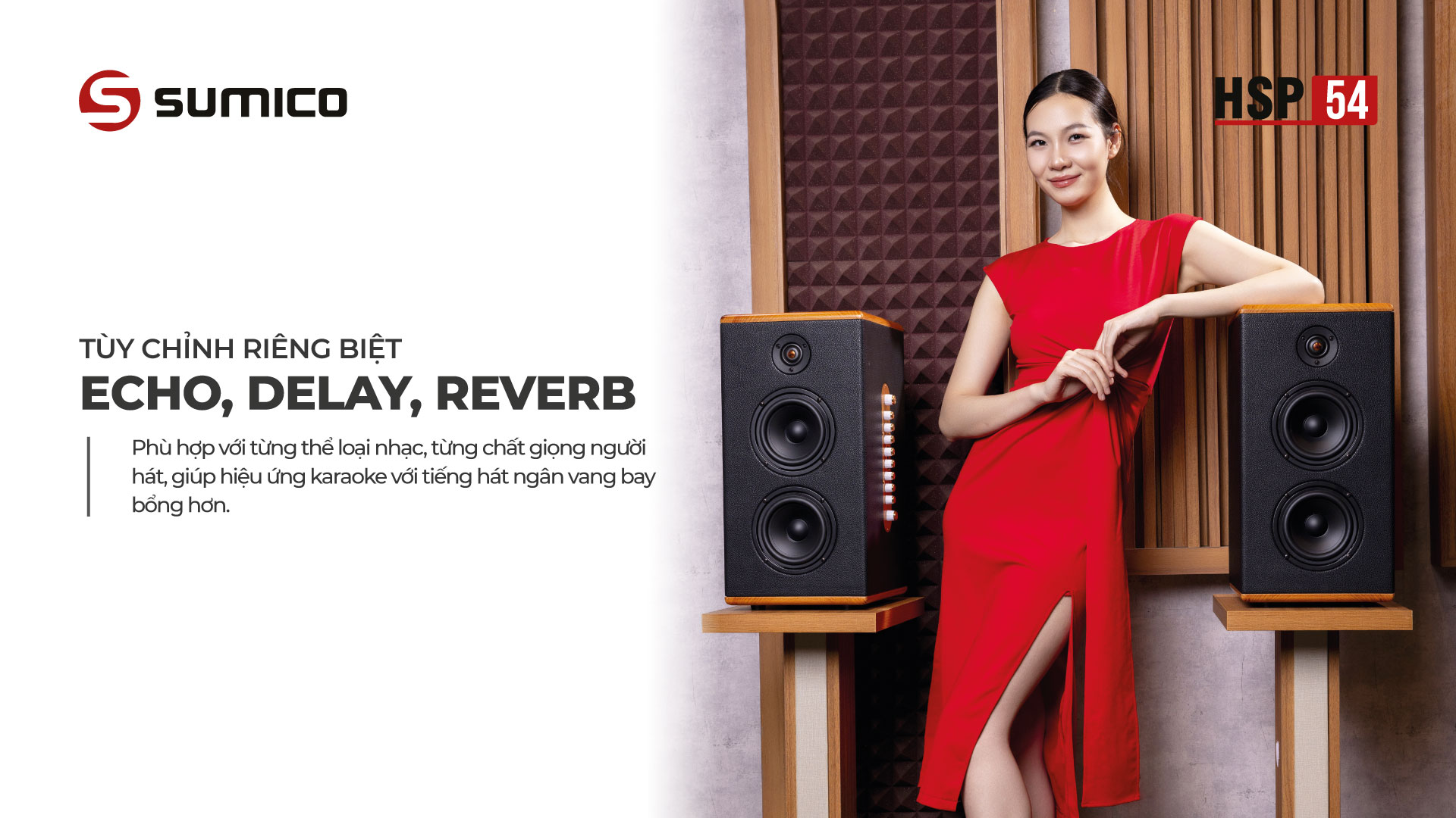 Rất ít loa karaoke tích hợp ampli trên thị trường có khả năng tùy chỉnh Echo, Delay và Reverb riêng biệt như Sumico HSP54 giúp loa dễ dàng phù hợp với từng thể loại nhạc và từng chất giọng người hát, giúp bạn karaoke thật hay với tiếng hát ngân vang bay bổng hơn.