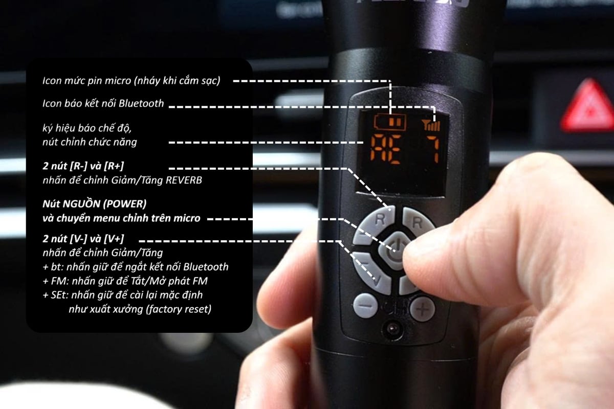 Điều khiển trực tiếp trên mic | MIC, ECHO, REVERB, Nguồn |